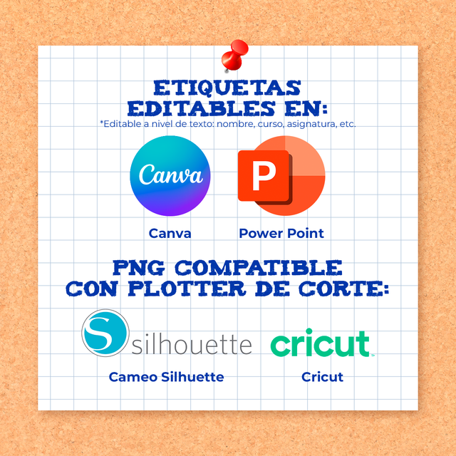 Editable compatible a nivel de texto con Power Point y Canva. Incluye PNG compatible con Plotter de corte (Silhouette, Cricut, etc).